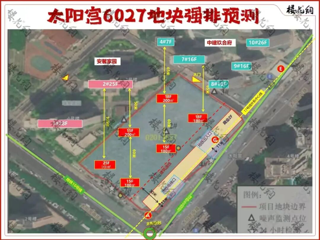 根据土拍文件,地块内拟建设的敏感建筑,退17号线外轨中心线约30米。这意味着,敏感建筑距离东南向的实际退线达到36-41米。