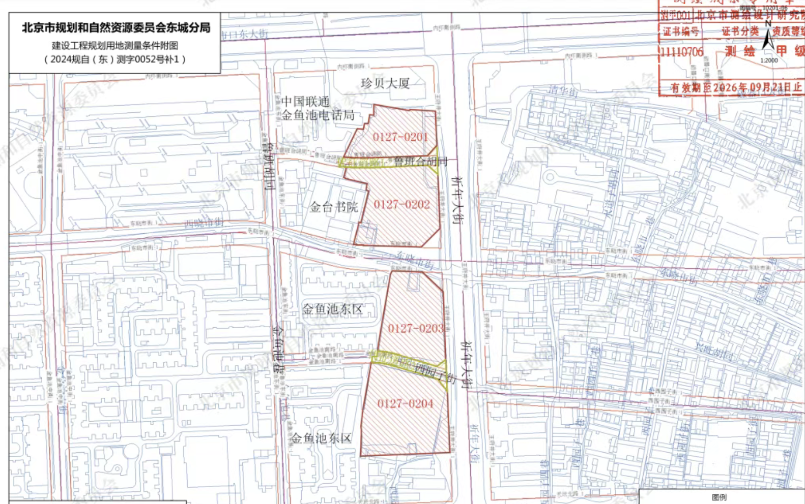 区位优越,配套成熟,天坛公园、国瑞购物中心、新世界百货、北京医院、同仁医院等环伺,尽享“皇城根儿”生活氛围。根据规划意见,地块四至范围为东至祈年大街,西至金鱼池小区,南至天坛路,北至珠市口东大街。地块被规划道路和胡同分割为南北四幅子地块,均规划为多功能用地(F1)。