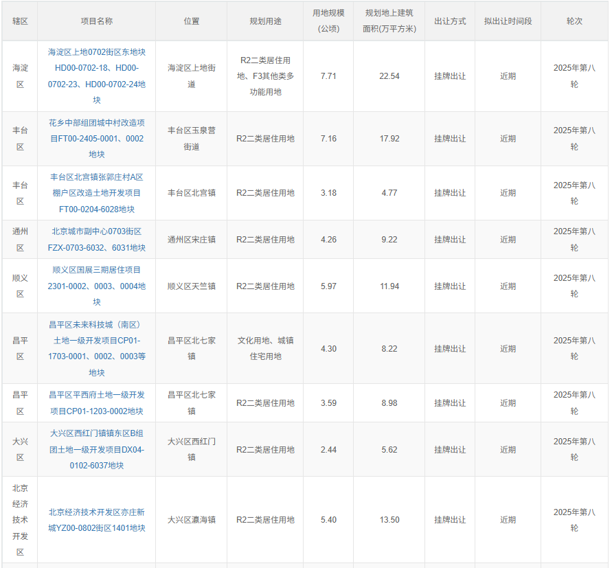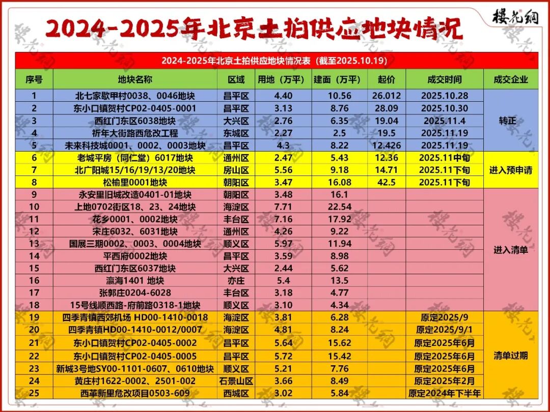 1、房山北广阳城0015、0016、0019、0013、0020地块,占地5.56万平米、建面9.18万平米起拍价14.71万平米,已进入预申请,预计2025年11月下旬开拍;