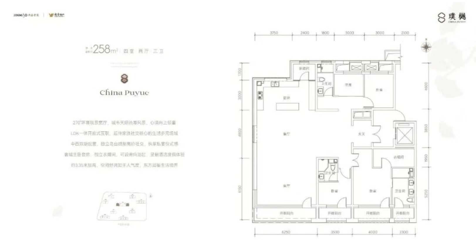 - 204-258㎡顶配:最高17米南向面宽,LDK一体化设计