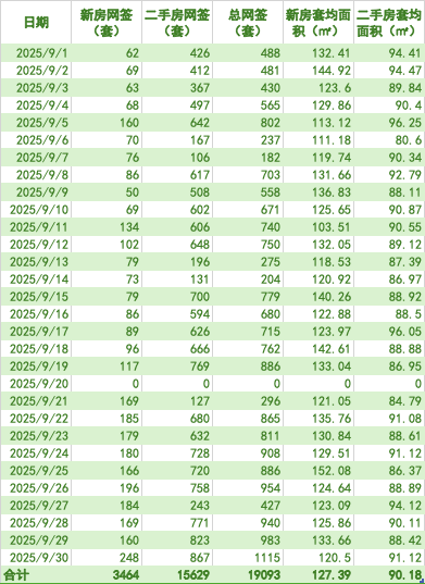 - 二手房住宅:网签15629套,环比增17.2%,创年内新高,但套均面积降至90.18㎡(刚需小户型主导)同比去年9月,新房涨7%,二手房大涨23.3%,政策“药效”正在显现。