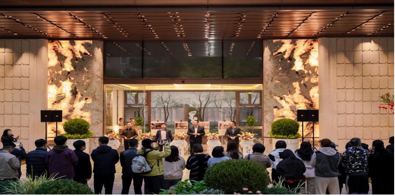 活动于午后四时启幕,嘉宾于售楼处签到留影,聆听项目宣讲,逐步走进花语璟云精心编织的生活剧本。随后,在光影交错的灯光秀中,剪彩亮灯仪式拉开帷幕。亮灯瞬间,冷焰齐发,将现场氛围推向高潮——这不仅是一场建筑的启幕,更是一场归家情感的集体共鸣。