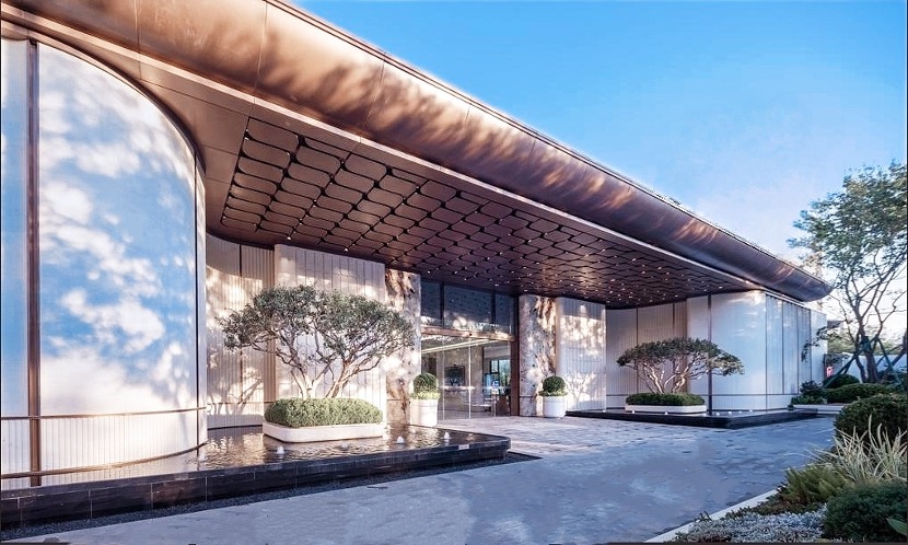花语璟云大门净高约5.8米,总高约6.7米,总宽约55米,西街横向沿街面展示约100米,宏大瑰丽。项目从“润玉梨花”中汲取灵感,将自然诗意淬炼于门仪形制;眼前所见是其华美的主体,未来两侧延伸,将形成超百米宽的震撼门仪,寓意着每一位家人前程似锦,整个社区欣欣向荣。