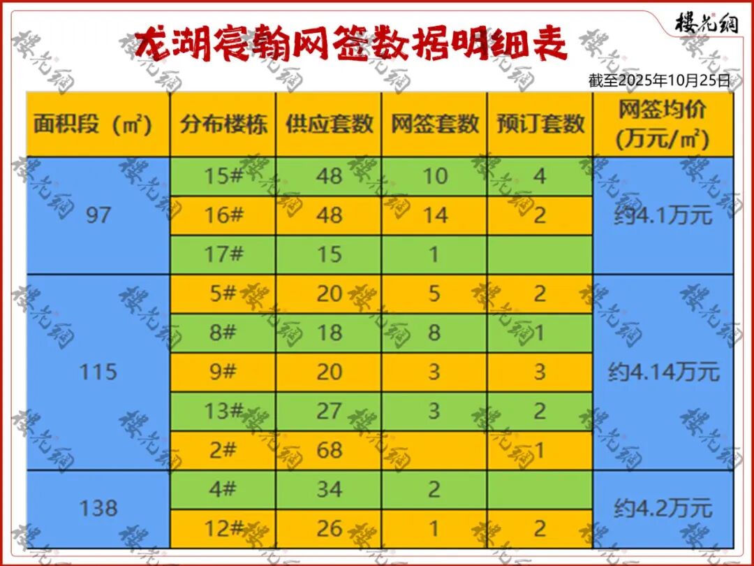 截至10月25日,龙湖宸翰供应551套,网签47套,签约面积5025.45平米,成交均价4.13万元/平米,网签金额2.08亿元。