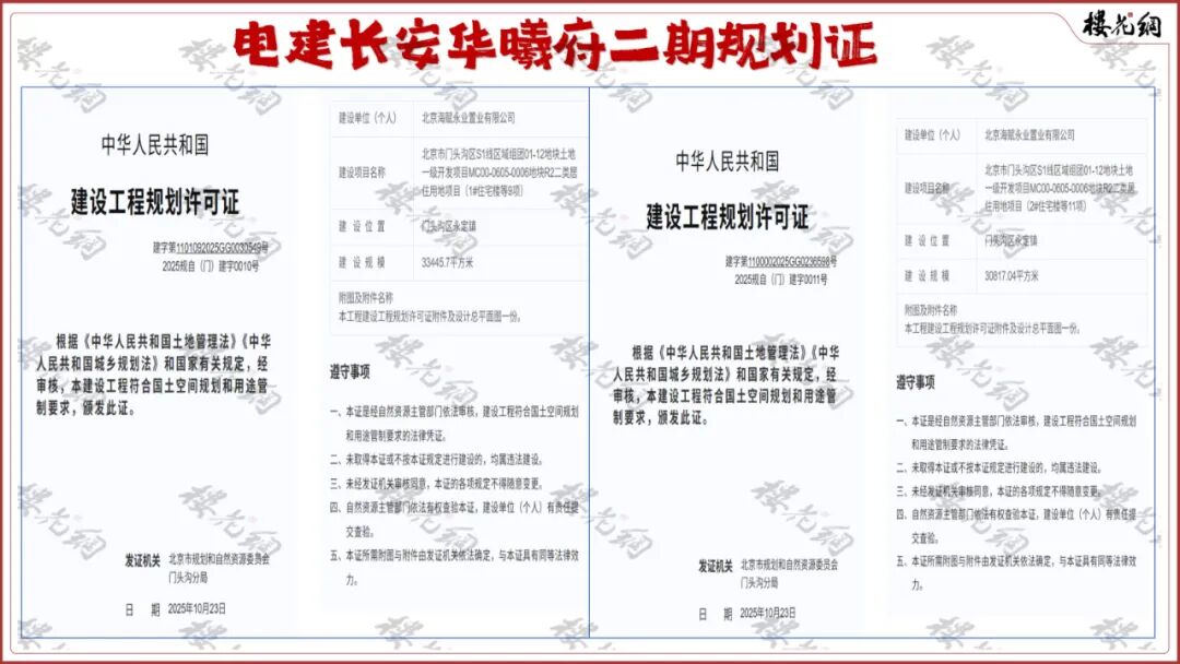 10月23日,北京海赋永业置业有限公司连拿两个规划证,2025规自(门)建字0010号和0011号,建设规模约6.42万平米。
