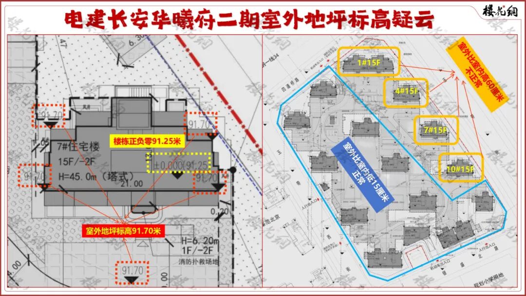 一般而言,建筑室内正负零要比室外地坪标高,高出15厘米。但,二期出现了怪异的事情。