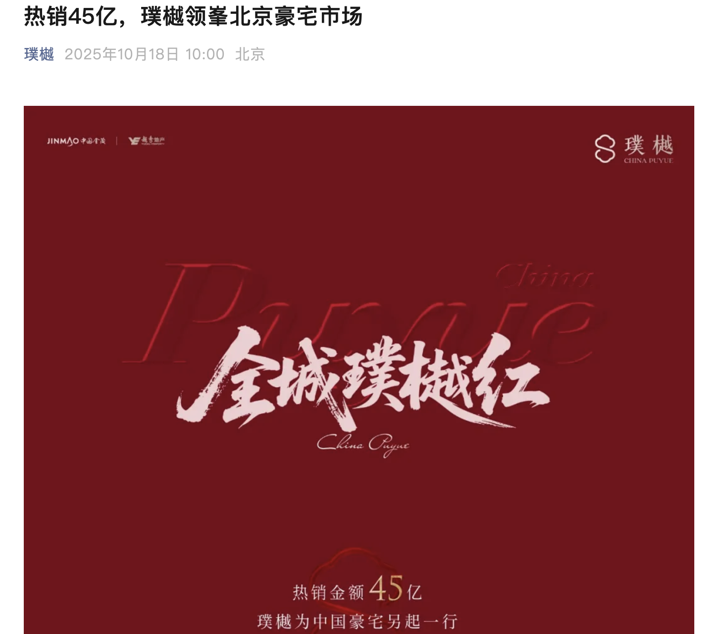 其二,市场分化趋势持续深化。在普通住宅承压的背景下,具备品牌溢价、产品创新与稀缺资源的高端项目展现出更强抗风险能力。璞樾35%的去化率与45亿元的开盘销售额,反映出购买力正加速向头部优质资产聚集。
