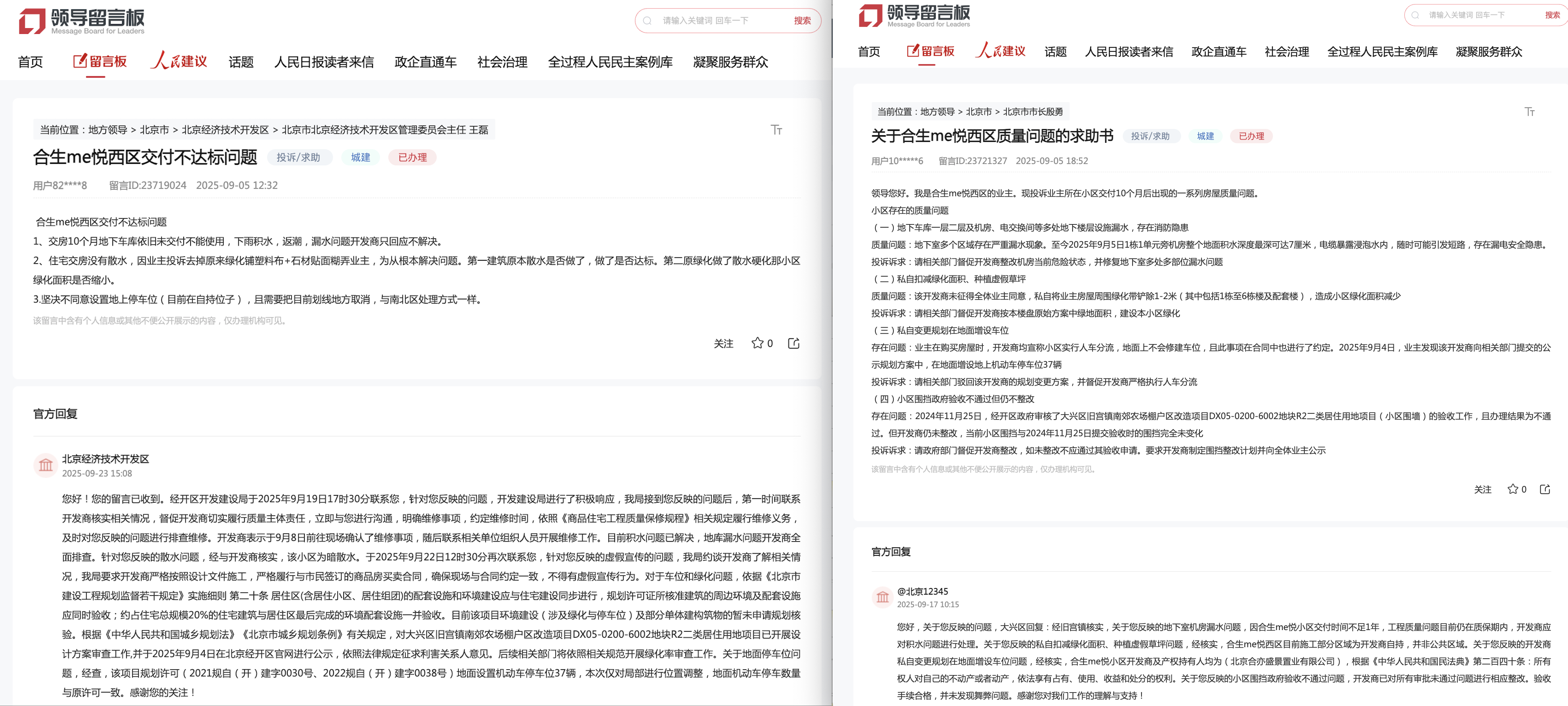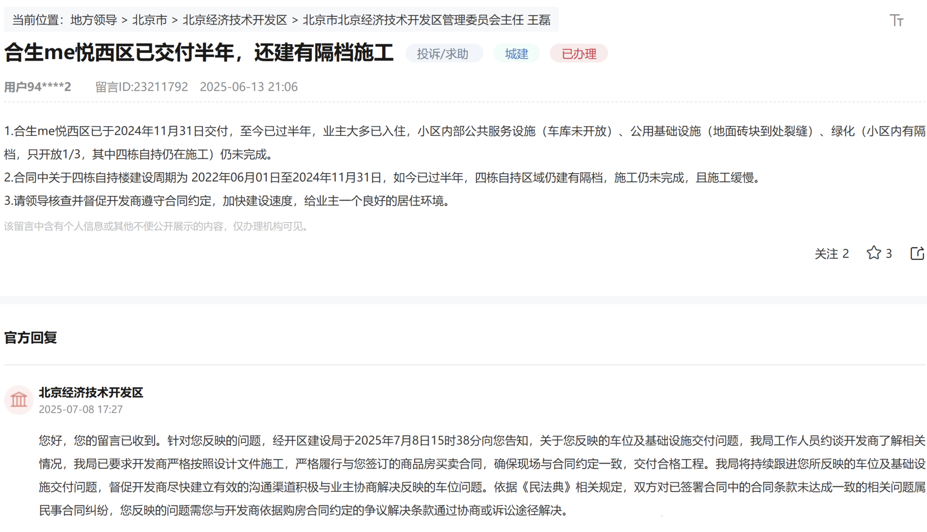 今年以来,合生me悦西区曾因交付质量问题多次遭到业主投诉。