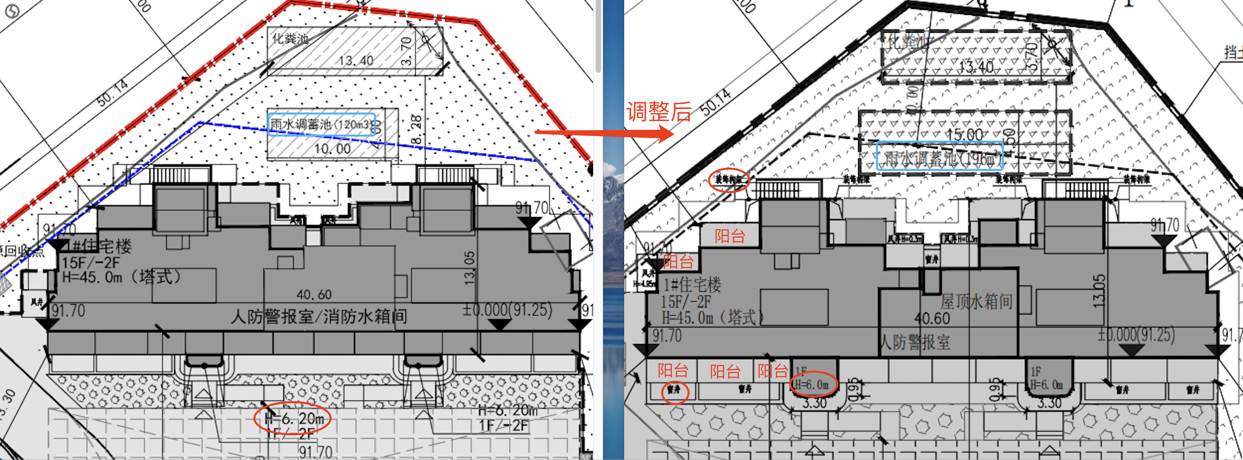3、小区北侧雨水调蓄池容量由原来的120立方,增至196立方。