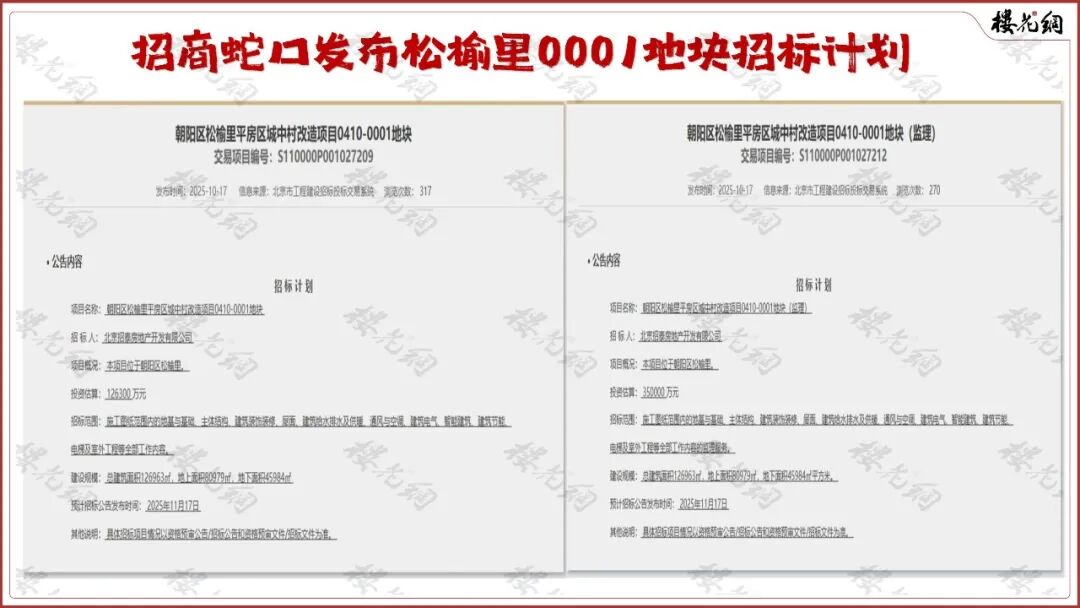 此前,亦庄的招商序、通州的朝棠揽阅等,招商蛇口均是在拿地前就发布招标计划,而且皆如愿了。