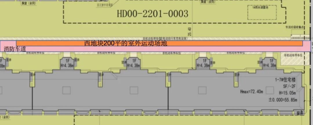 二、东、西地块各有一个面积约200平的室外运动场地,均占用了消防车道。