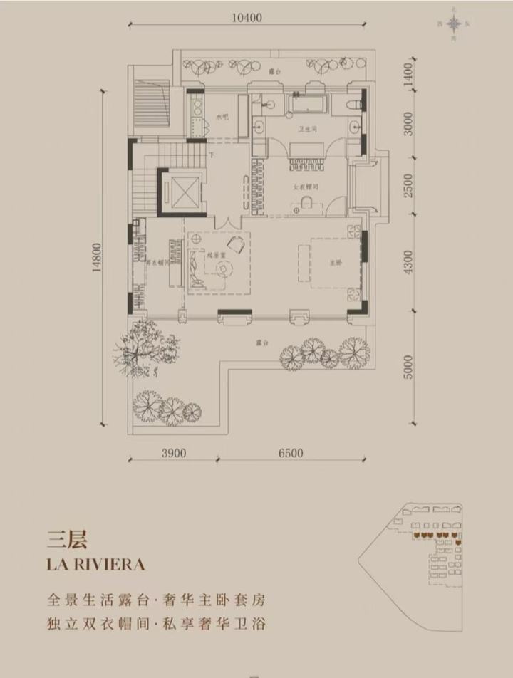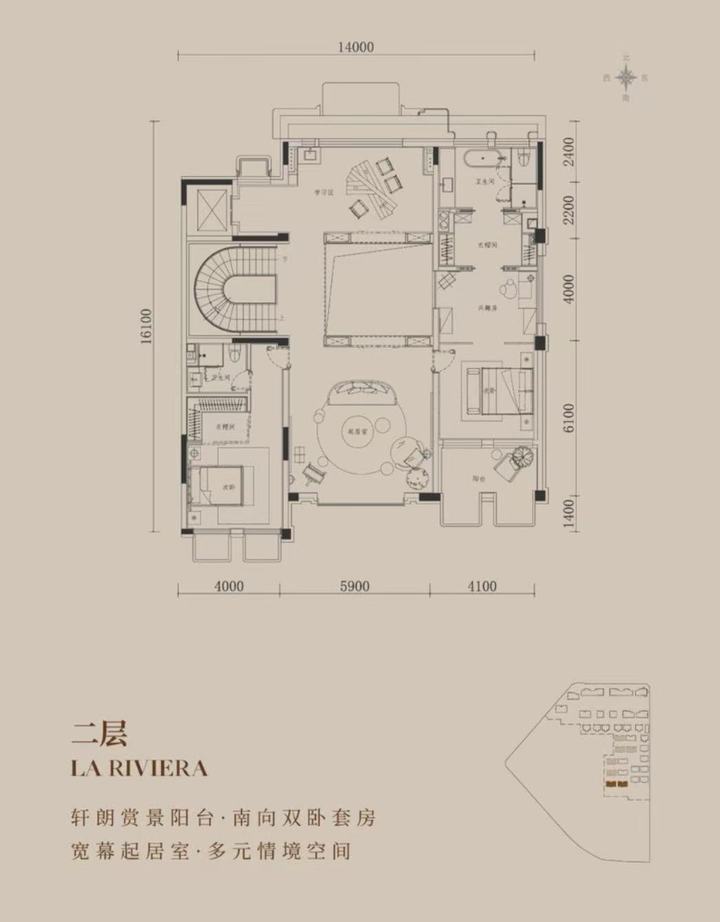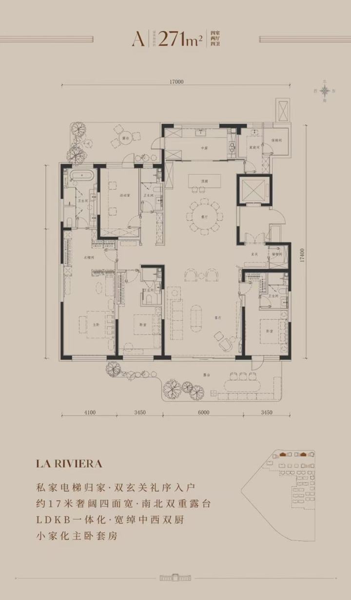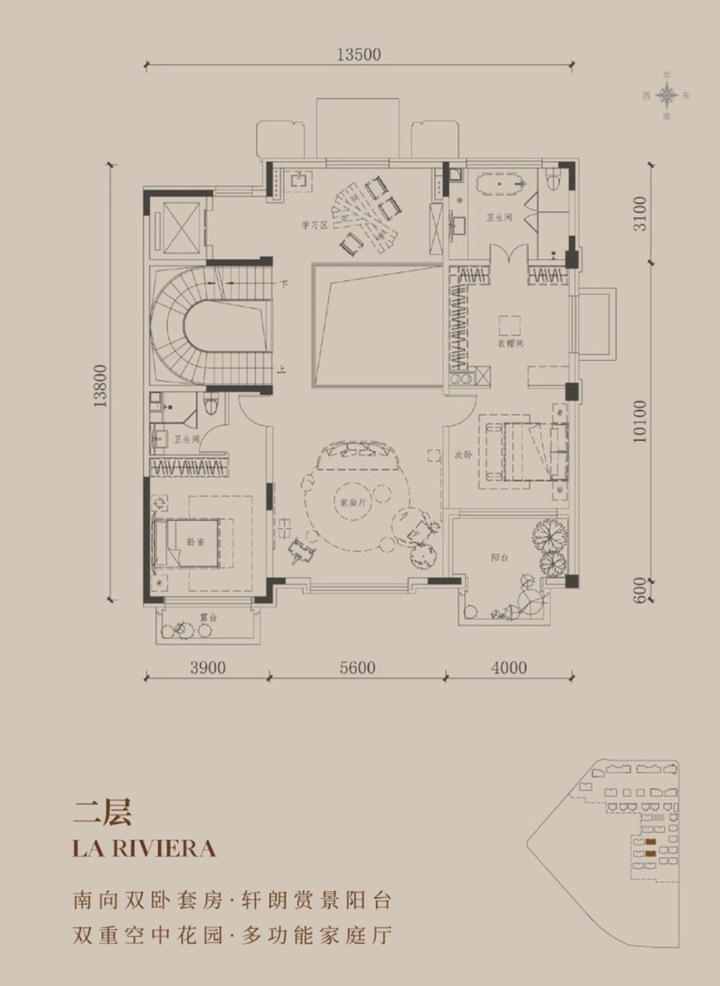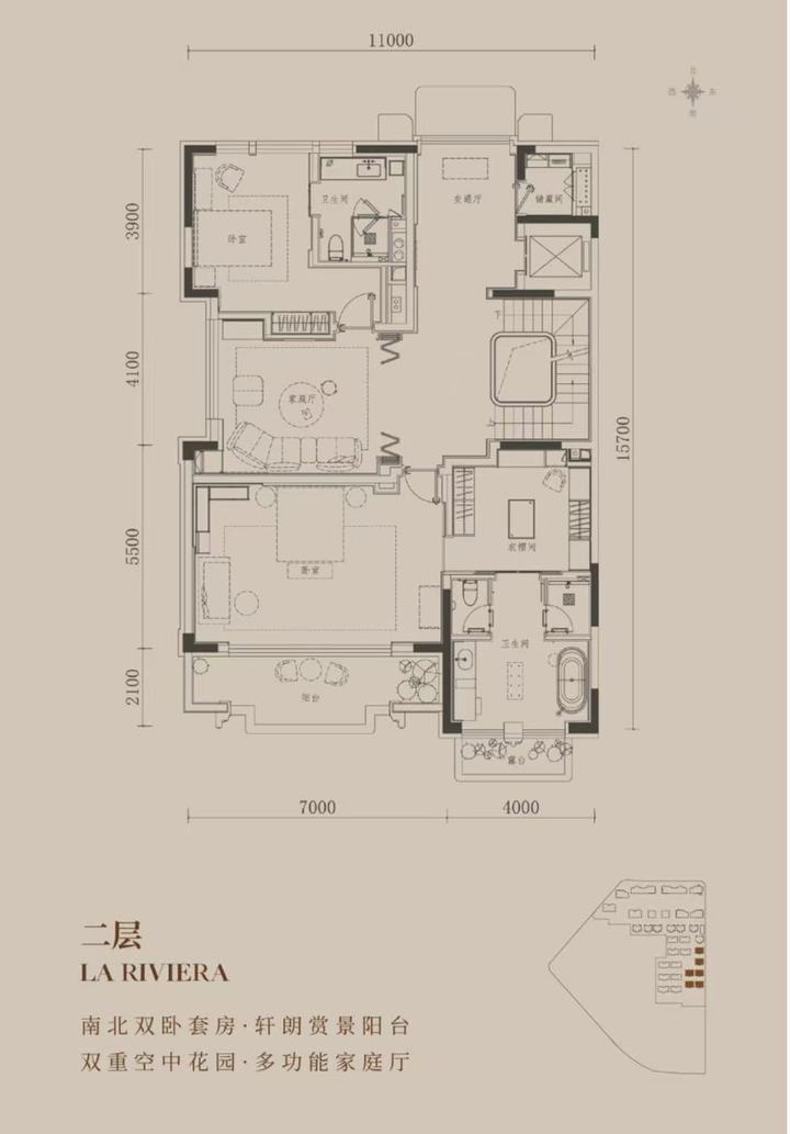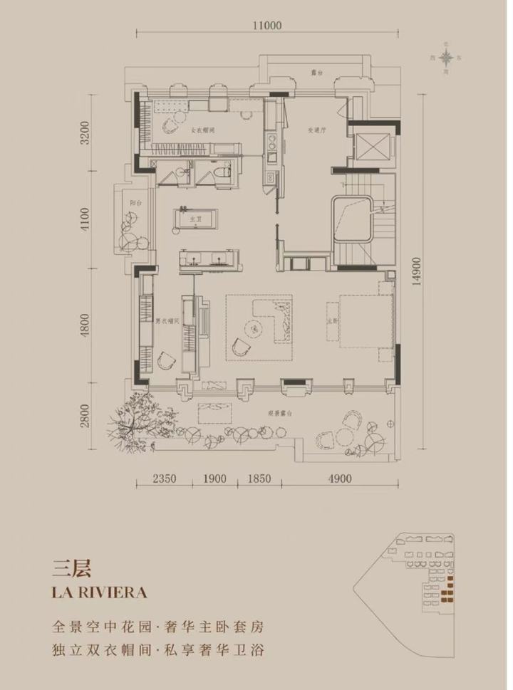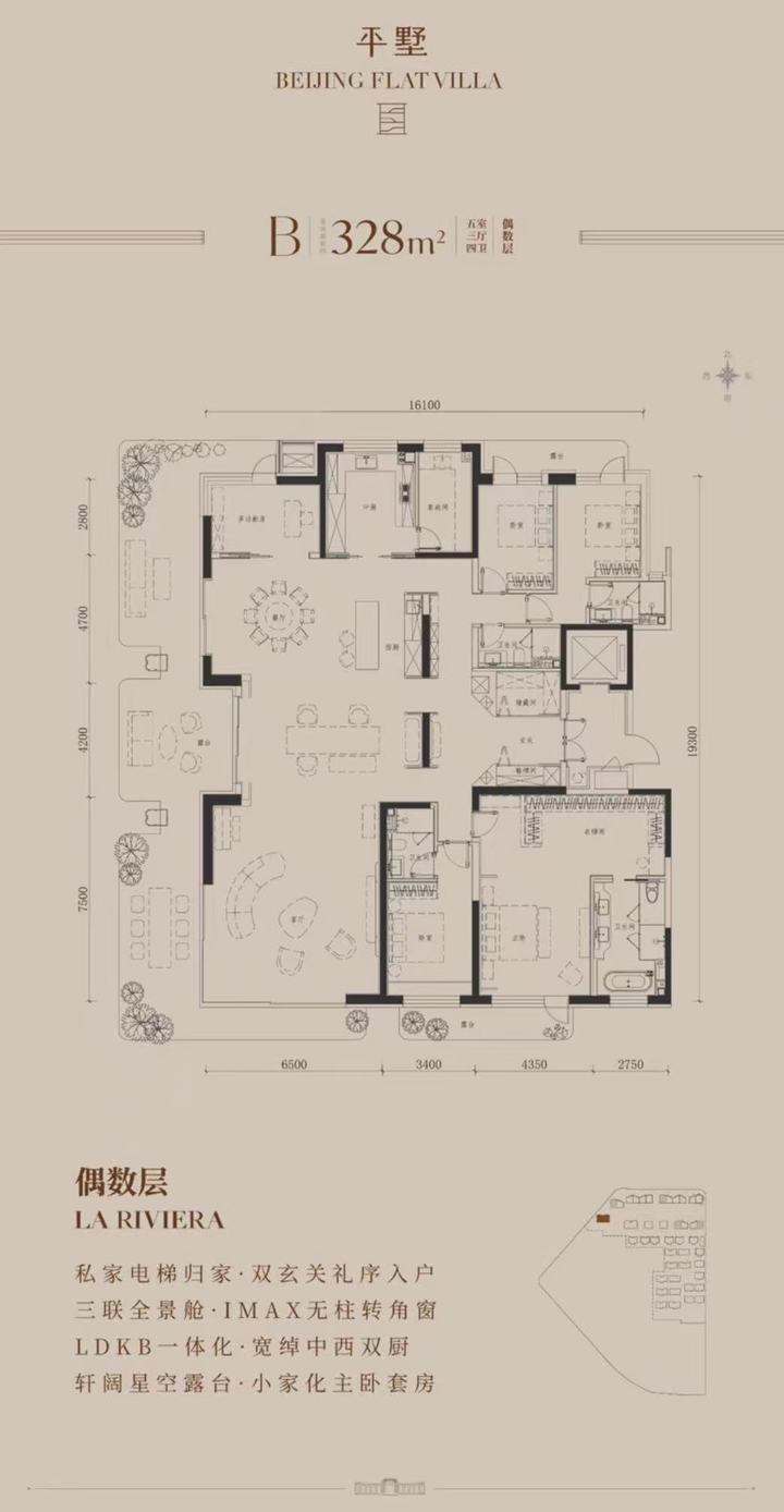 平层小家化,无界全景舱,最长约9米采光面,最大约4.2米进深空中庭院。