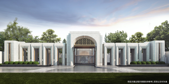再往里是物业服务用房和邻里共享空间,向内连接一整条景观轴,结合两侧庄园式别墅,凯旋门延伸至香榭丽舍大道的即视感。