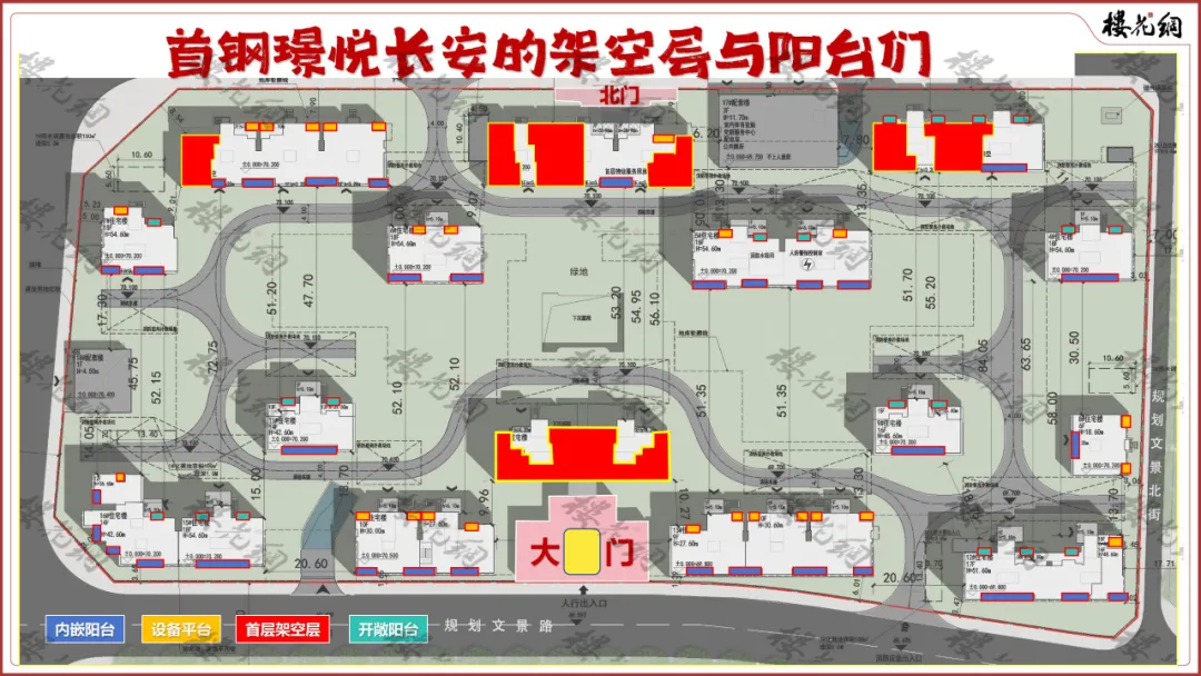 先来看看首钢璟悦长安的楼间距。112米的地块进深,首钢地产在它身上,规划了4排16栋6-18层的住宅楼。