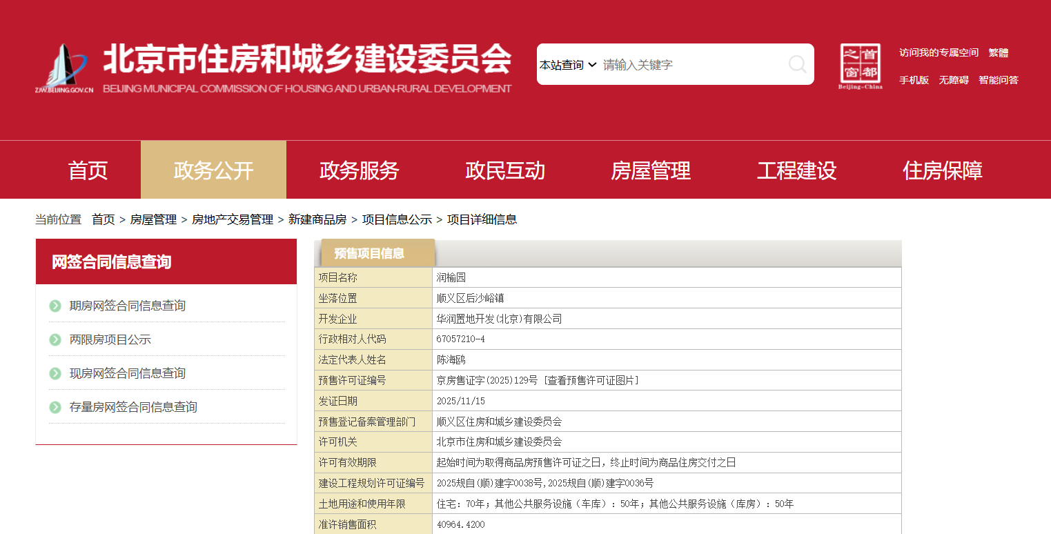 华润置地温榆河新盘“北京润园”(备案名:润榆园)11月15日拿下预售证,首批442套房源正式入市!