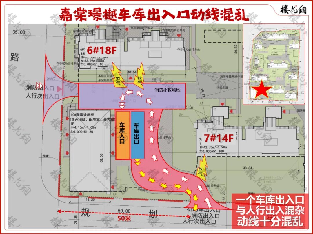 按照土拍文件,它的车库出入口开口设在南面的街坊路上,距离西边岳各庄东路50米处。嘉棠璟樾照办了。