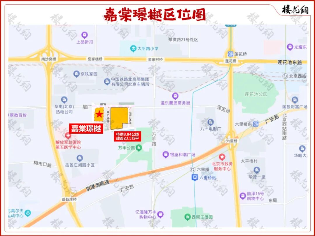 嘉棠璟樾的位置不错,位于丰台区六里桥街道,距离西四环约900米。根据最新的地铁11号线二期环评公示,地块西侧距离规划中的青塔站约800米。