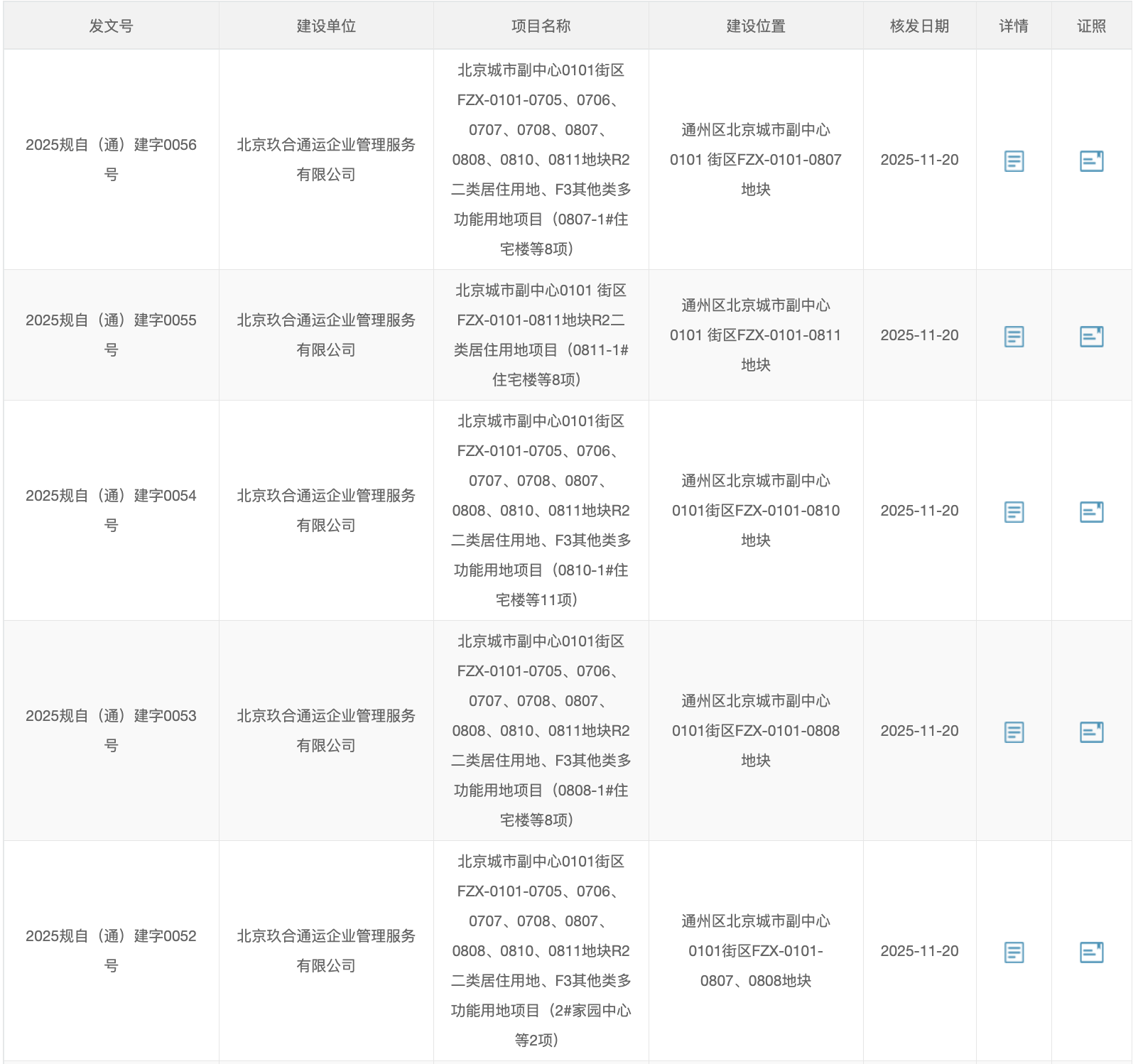 11月20日,中建运河玖院二期取得5张建设工程规划许可证。