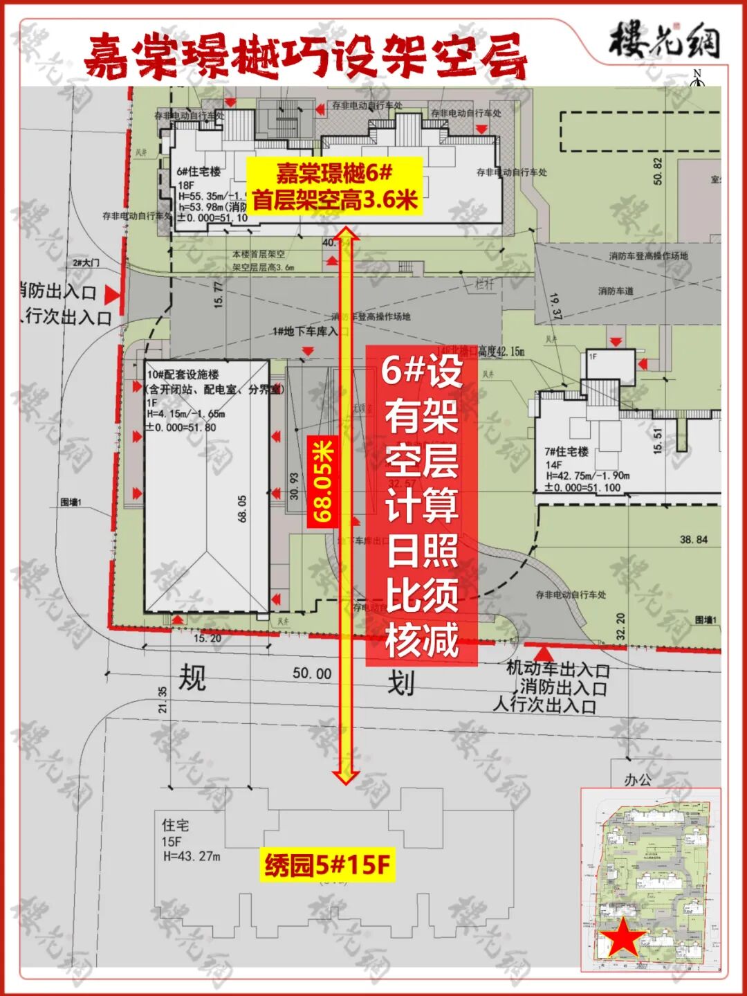 A、将6#的首层变成架空层——层高3.6米。按照设计规范,在计算日照间距时,须核减。如此一来,它的日照间距就能达标了。