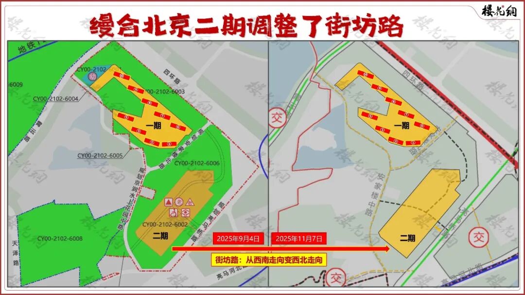 11月初,北京规自委公示了一份朝阳区街区规划草案,显示缦合北京二期的街坊路调规了。