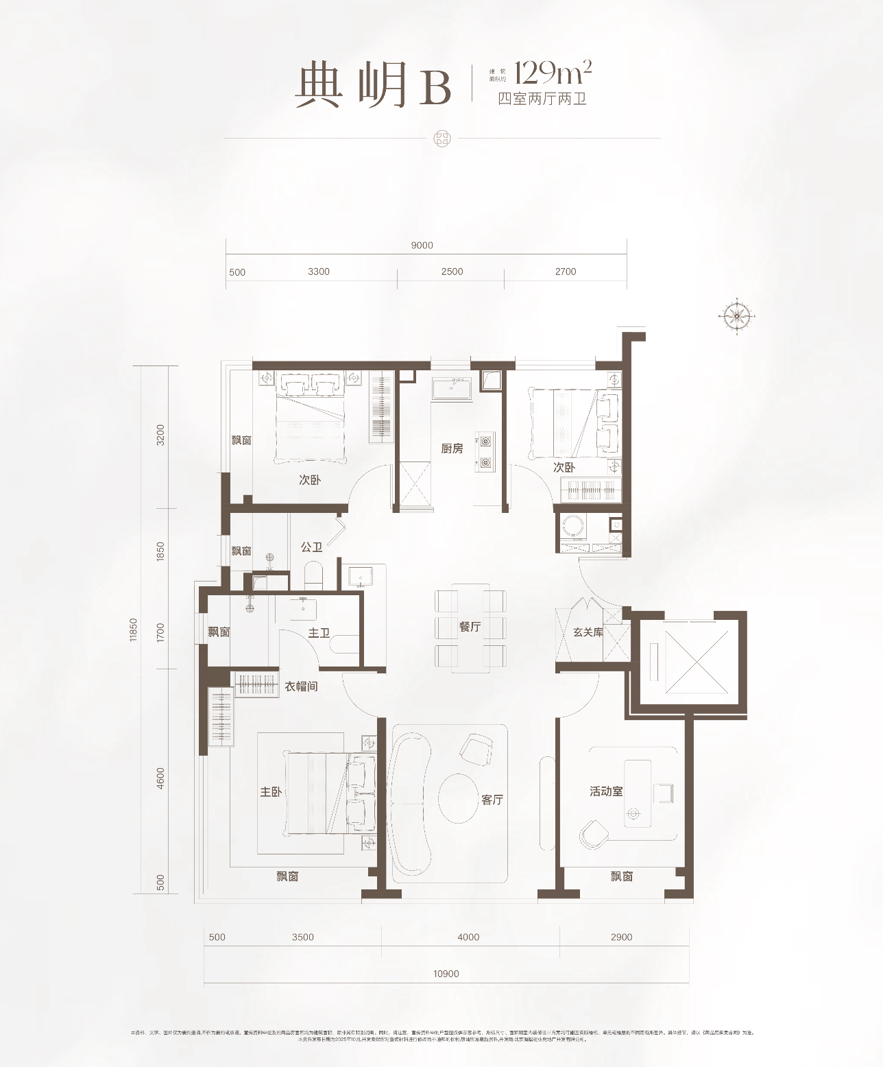 三种户型做了四个样板间,其中129㎡主力户型做了展示和交付双样板。