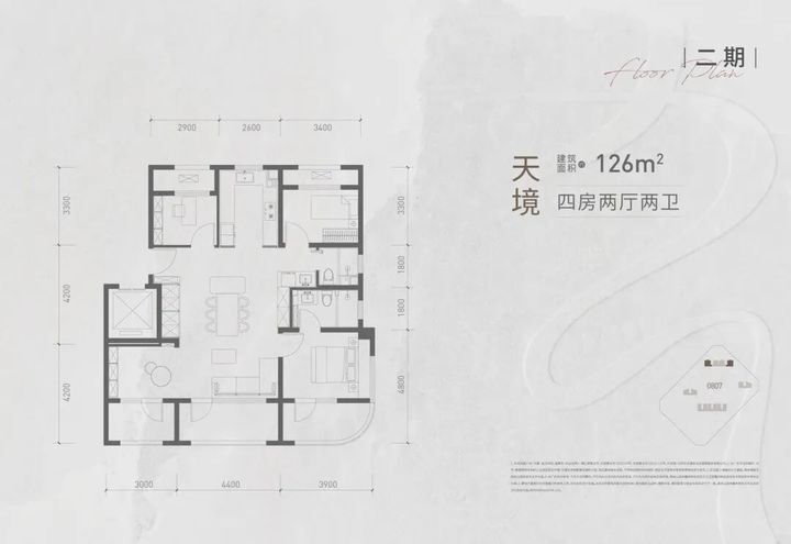 二期增加了90㎡刚需小户型,同时减少了顶配260㎡户型的配比,取而代之的是150㎡和200㎡面积段。