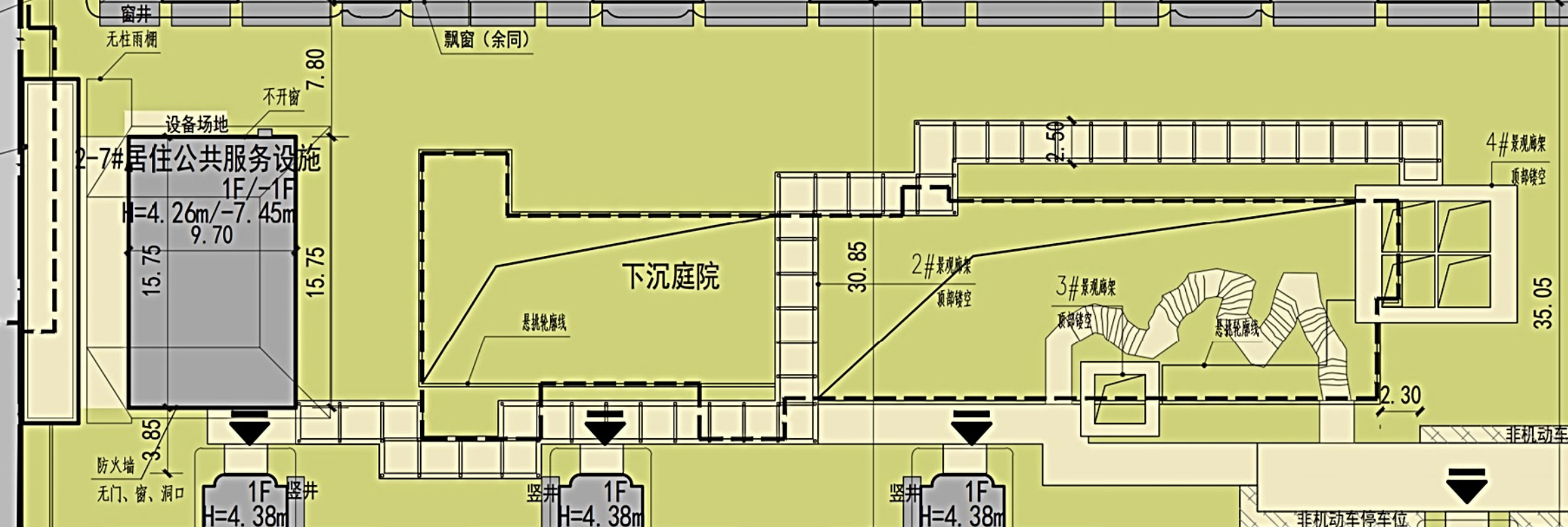 最终的设计方案,大部分楼栋都突破了15米限高,地上楼层数做到5层。