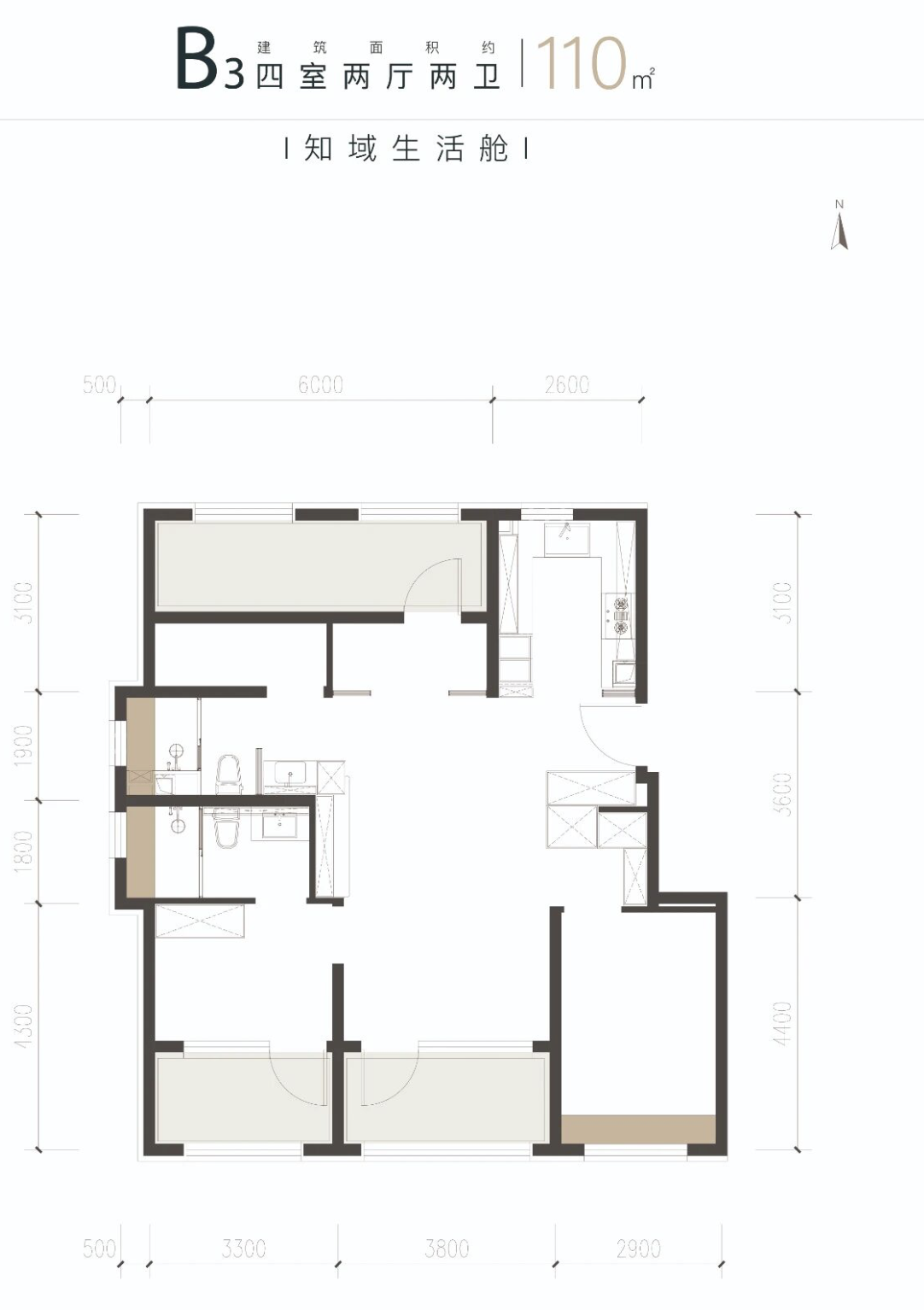 主力面积段92㎡/110/131㎡,三居起步。