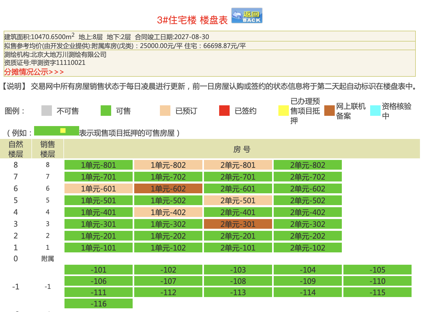 3#楼2套,建面约329㎡,预售均价约6.67万元/㎡。