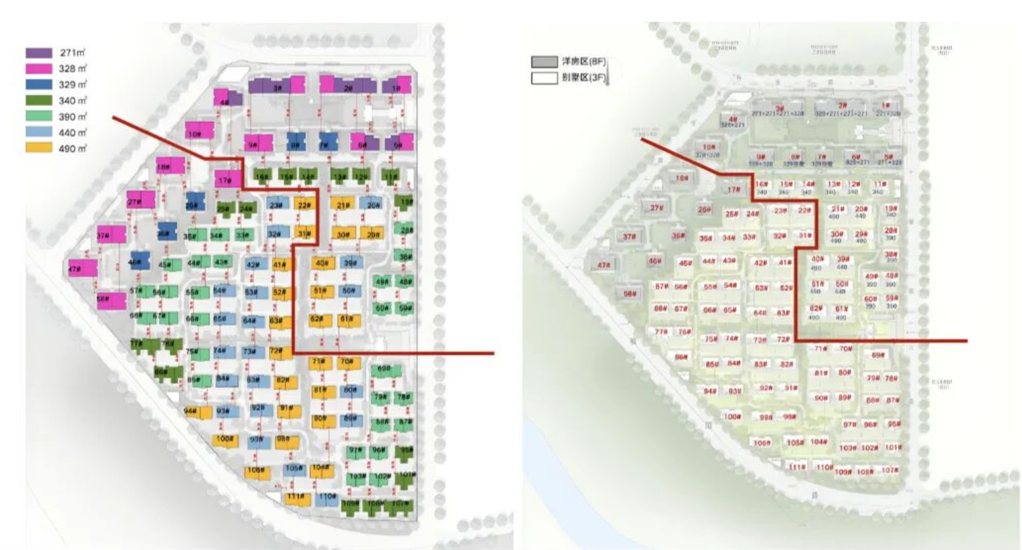 加上首批取证的23栋院墅,项目三种产品均已亮相,位于小区的东北部。