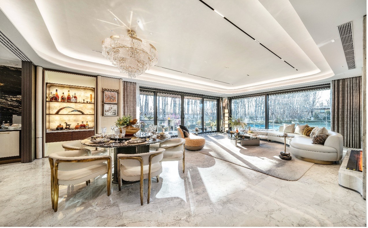 此次亮相的220平米及190平米平墅样板间,以“别墅生活平层化”为核心,以“基于生活方式定位功能,基于功能考量空间,基于空间定制配置”为理念,回应居住需求的演变,重塑高端生活方式样本。