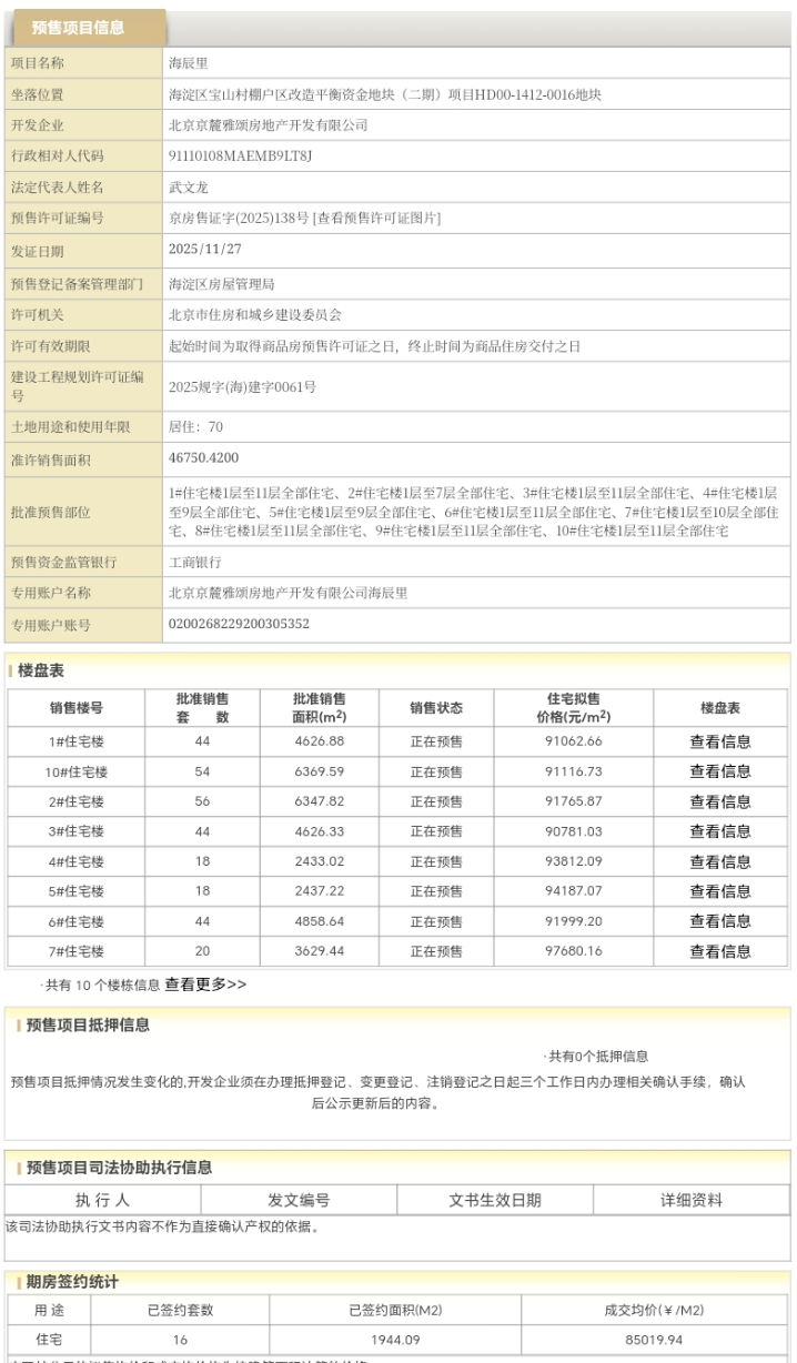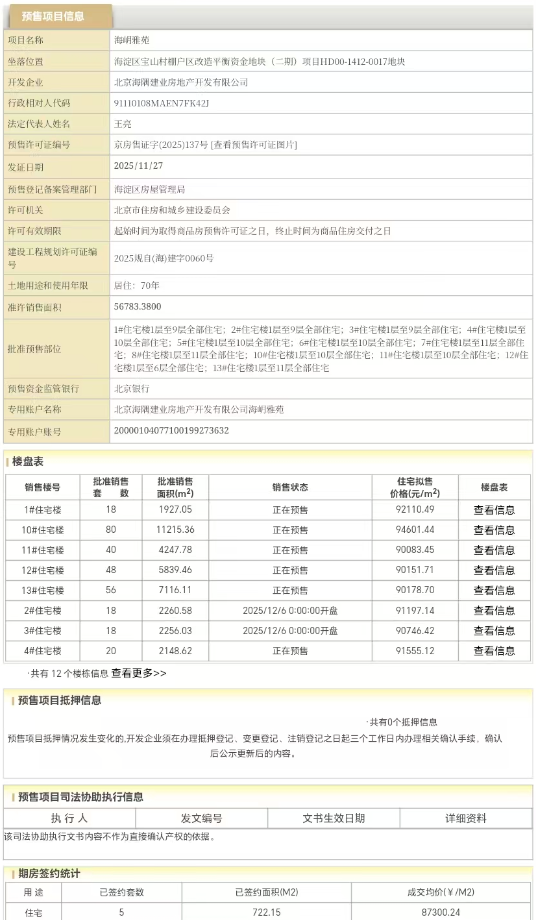 开发主体北京海隅建业房地产开发有限公司,成立于2025年6月13日,注册资本2000万元,由北京金隅地产开发集团100%持股。