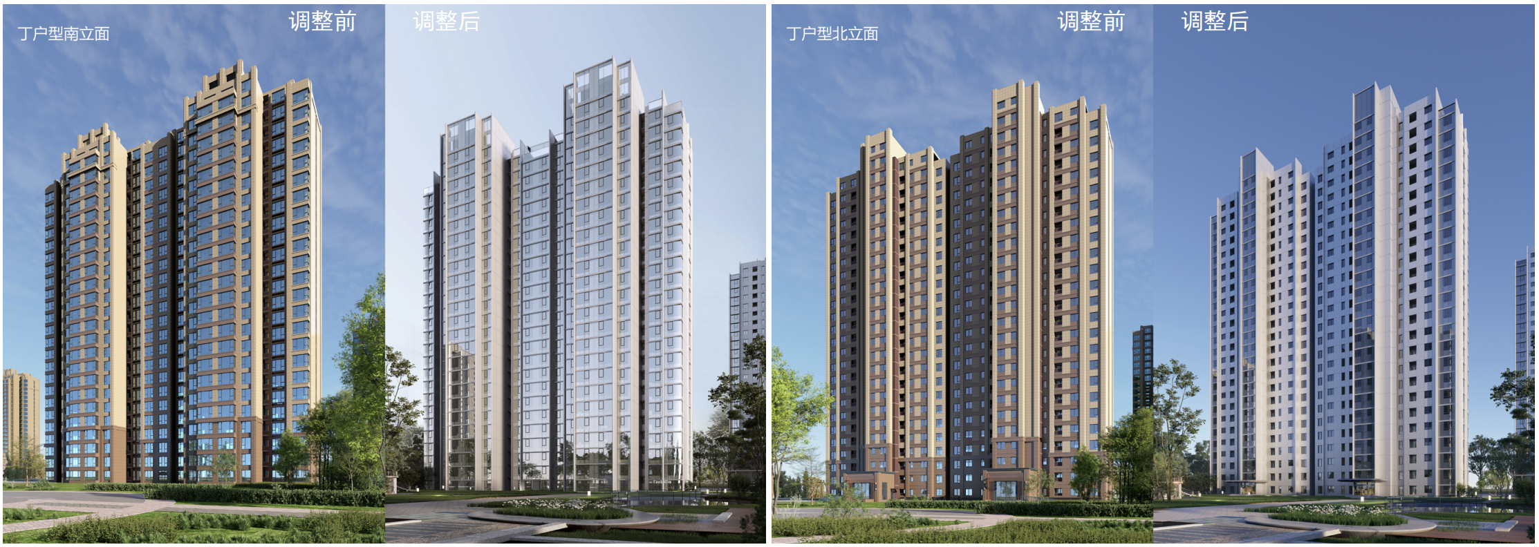 本次对上述 16 栋楼外立面效果进行了优化,将石材外立面调整为玻璃和铝板组合的外立面。