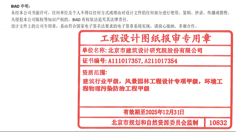 图纸的著作权及其他相关权益属北京市建筑设计研究院股份有限公司(BIAD)所有, 图中所含的专有技术信息应予保密。未经本公司书面许可,不得复制本图纸或将信息提供或披露给任何第三方。