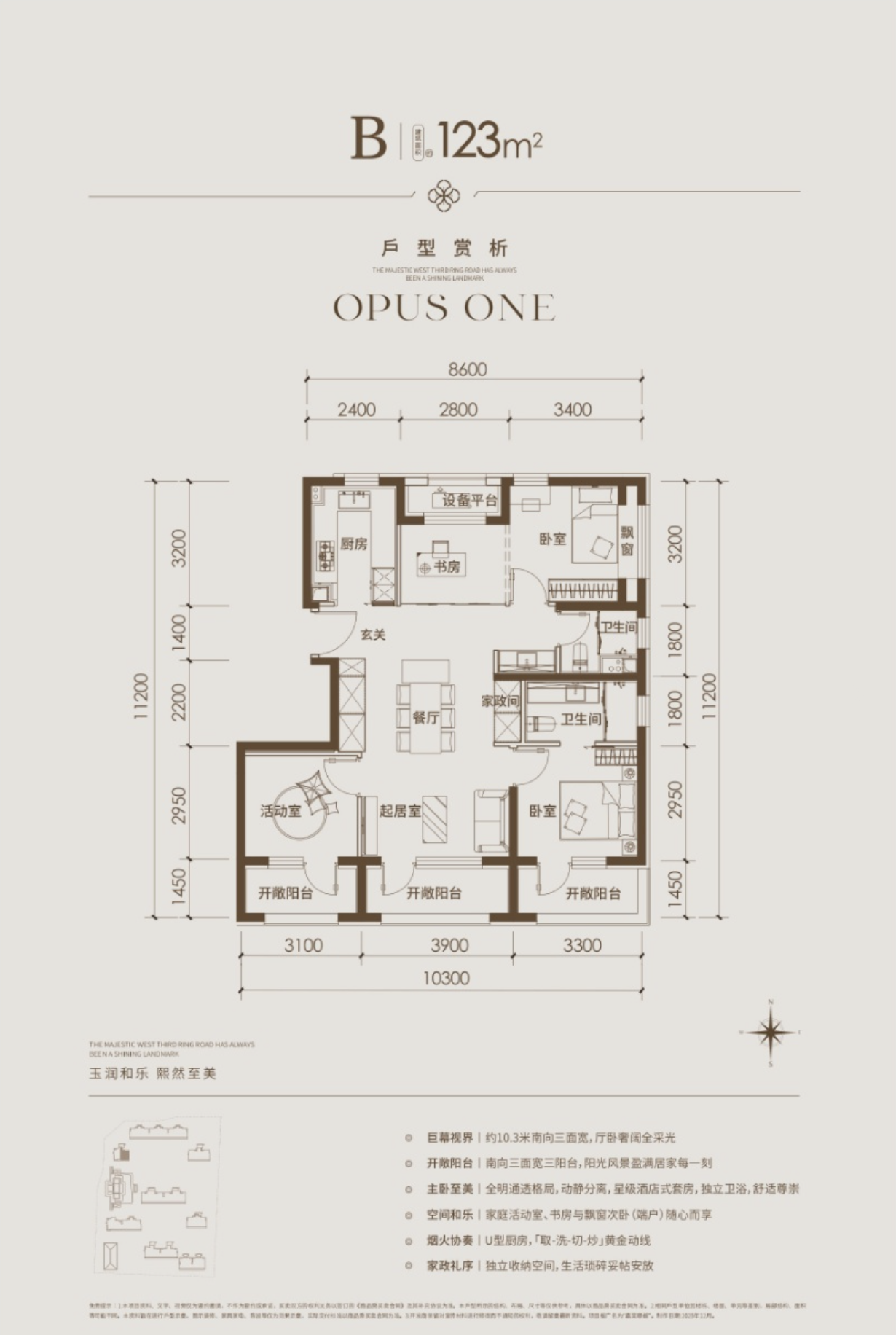 起步建面99㎡三居两卫,位于东南角的8#楼。