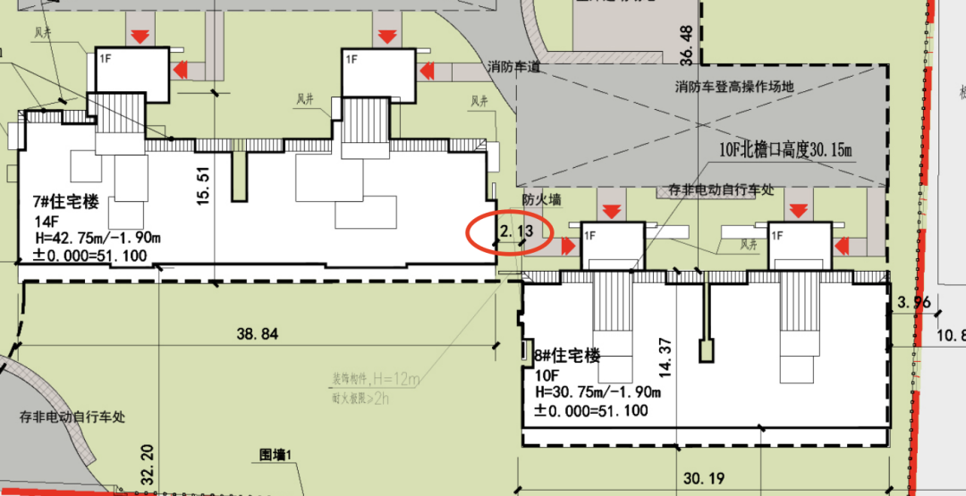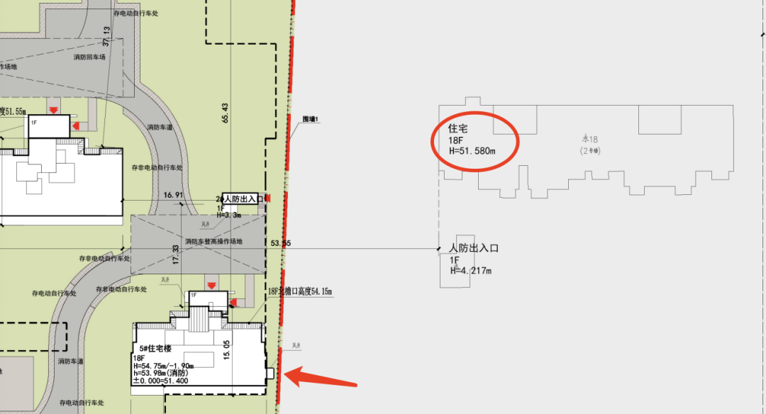 而《消防法》要求,住宅楼与围墙应保持6米以上距离,且6米内不得有高于围墙的建筑。