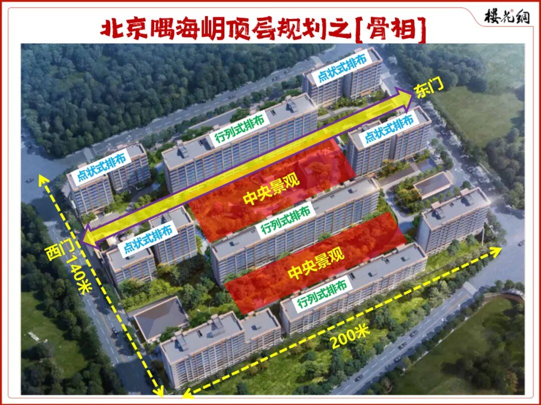 这三点里,最值得细究的是楼栋排法。它是用上帝的视角来规划的,会带来至少四个好处:
