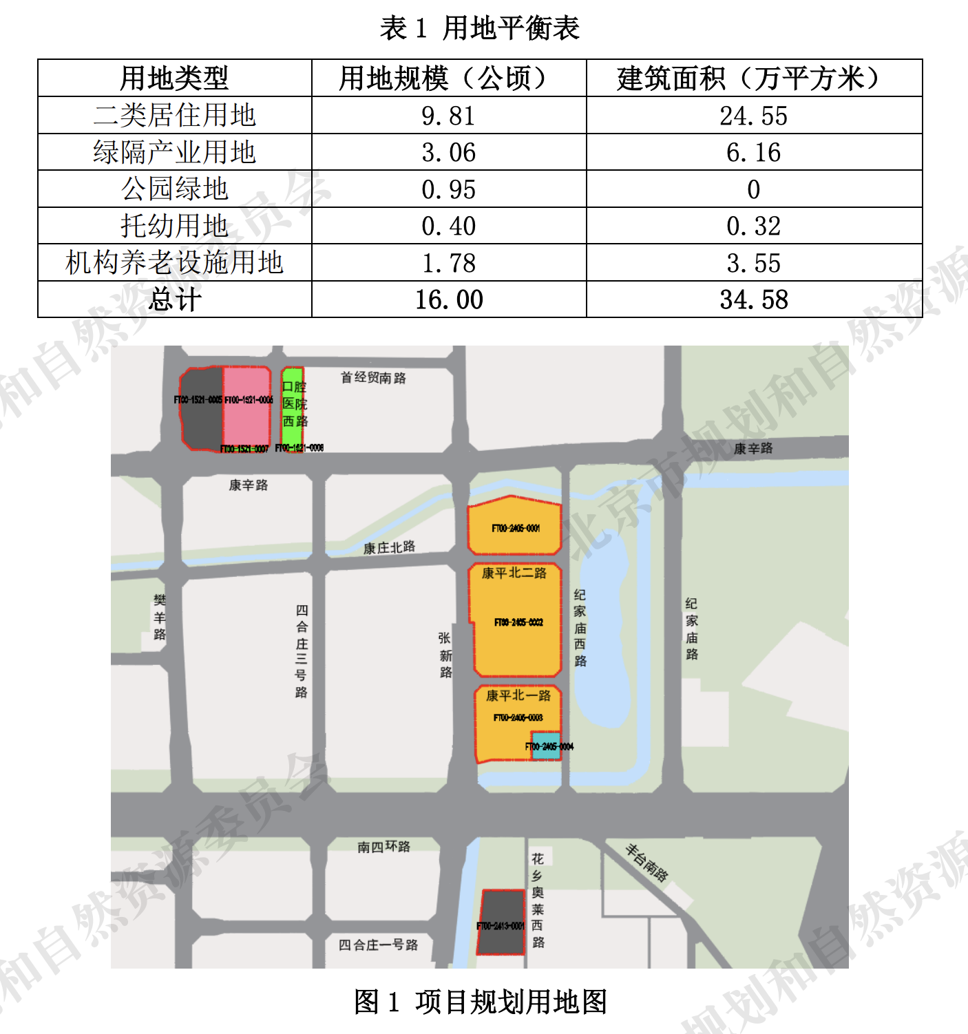 根据街区规划,花乡中部组团城中村改造项目1521~2413街区总用地面积约16公顷,总建筑面积约 34.58 万㎡,规划用地性质为二类居住用地、绿隔产业用地、公园绿地、 托幼用地及机构养老设施用地。