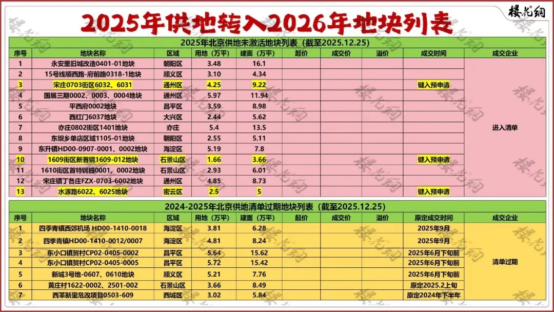 而2025年尚在供地清单的12宗地——有3宗进入预申请,将跨入2026年出让。