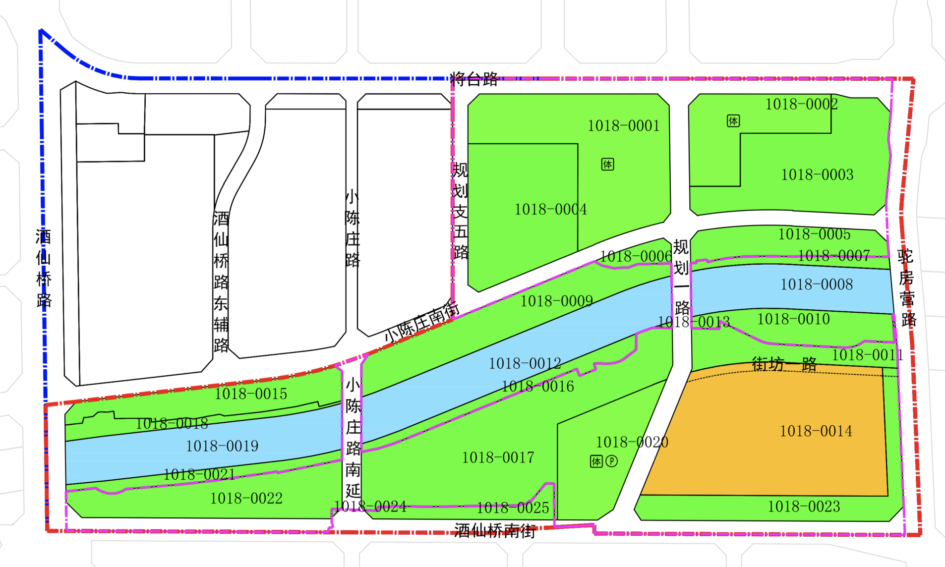 规划范围内以公园绿地和体育场馆用地为主,仅1幅住宅用地,为1018-0014地块: