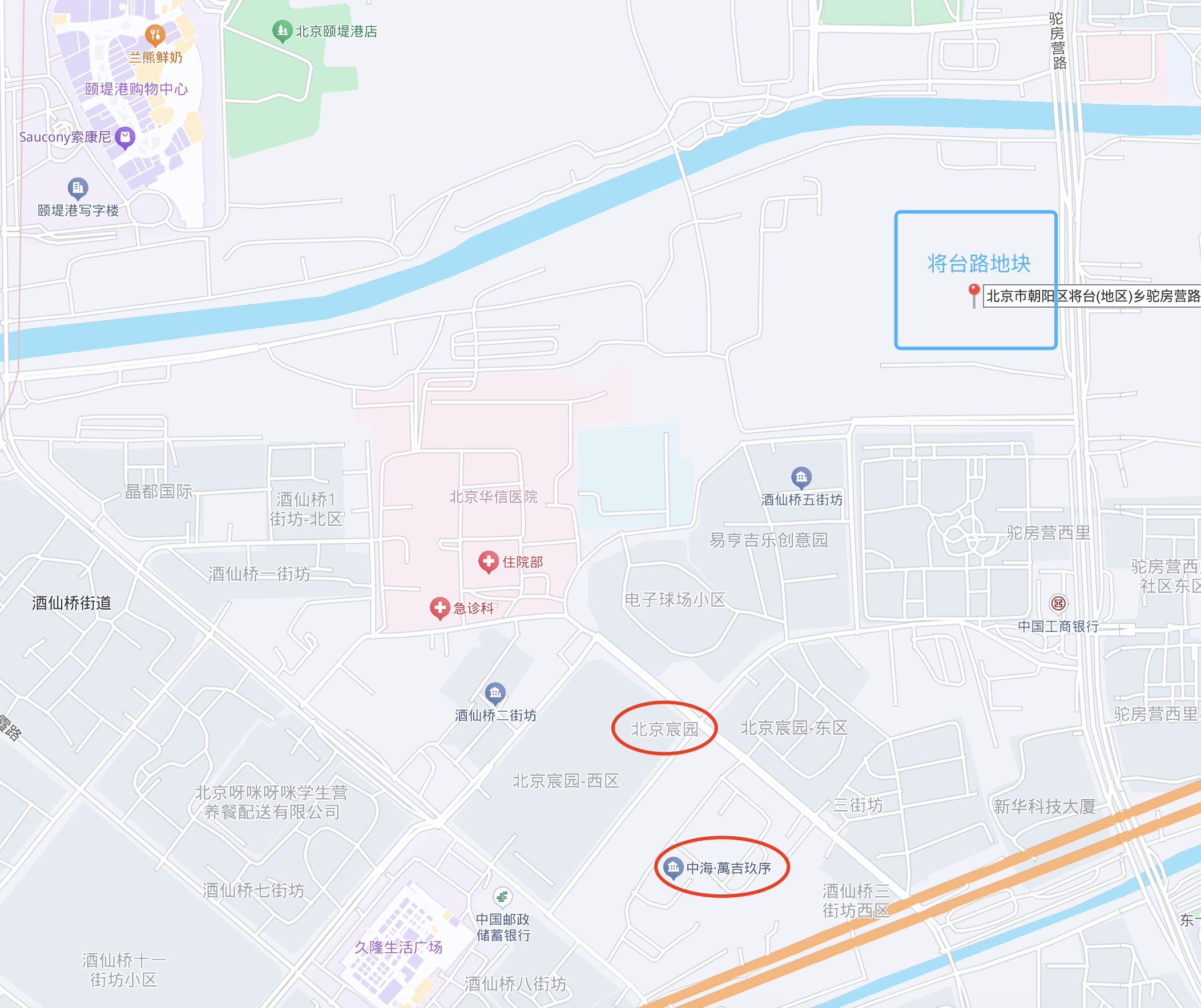 西南方向不到500米,就是北京宸园和中海万吉玖序项目。
