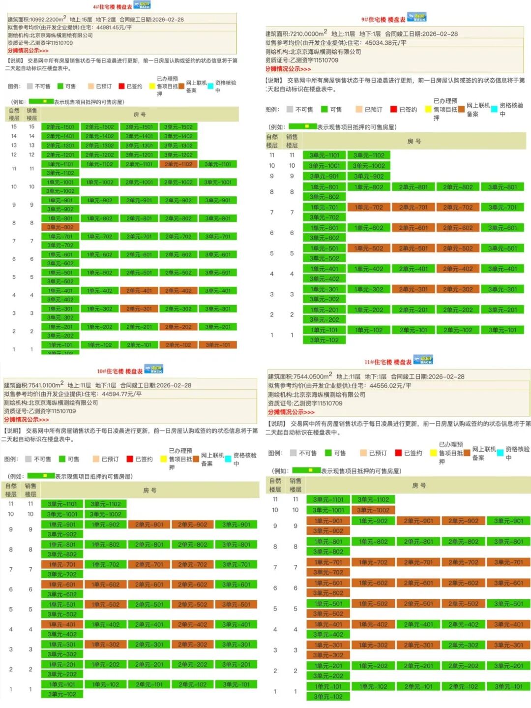 9#、10#、11#,分别是54、58、58套,包括116和128㎡户型。其中,128㎡户型网签分别为2套、6套、10套。