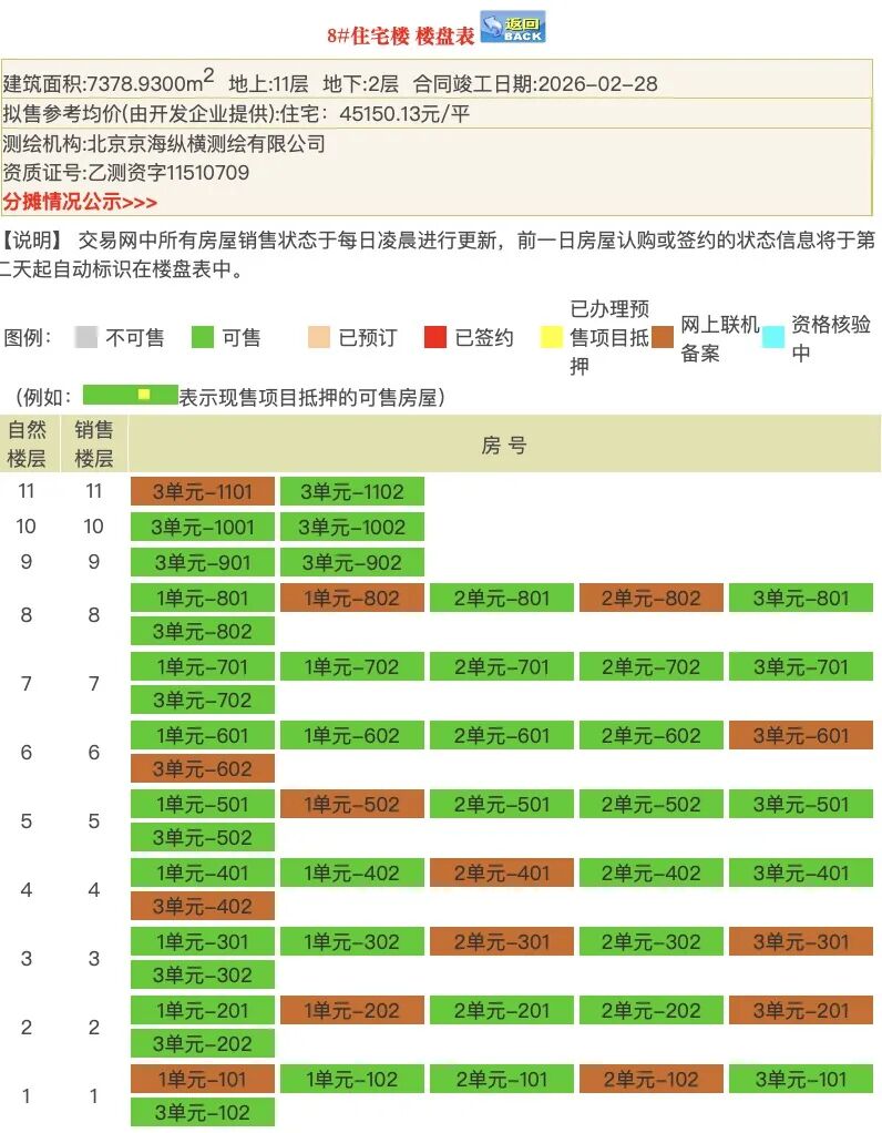 4#,共计82套,包括111和128㎡户型,但目前仅有8套网上联机备案。其中,128㎡户型网签0套。