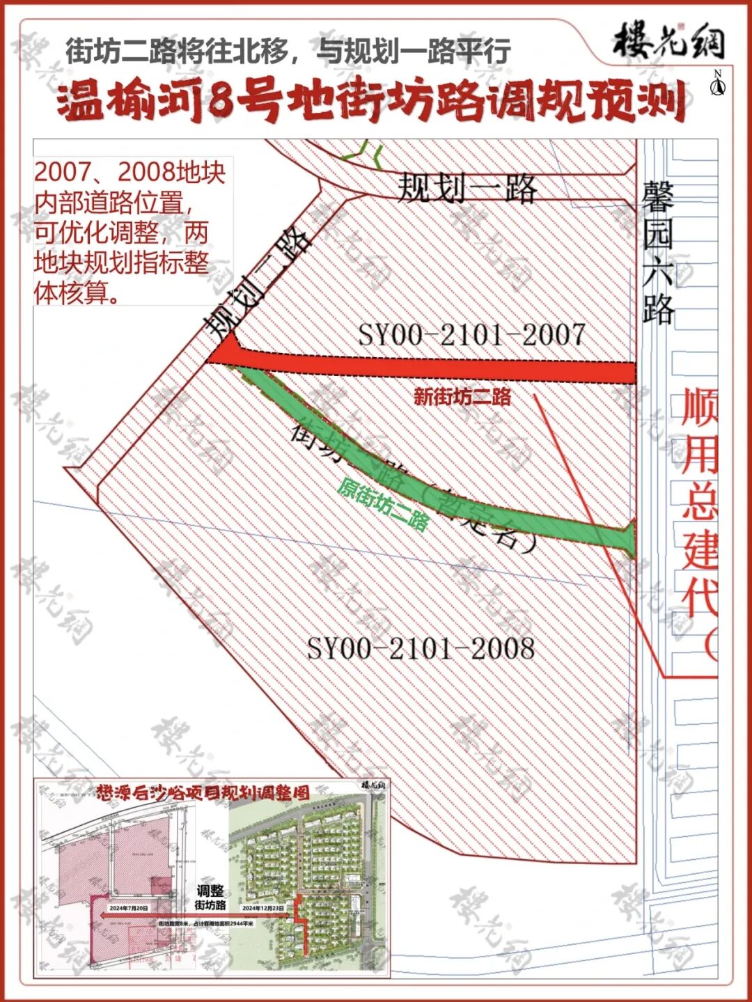 北京规自委顺义分局下发补充说明,“2007、2008地块内部道路位置,可优化调整,两地块规划指标整体核算”。(详见《顺义别墅,刮起调规之风》)