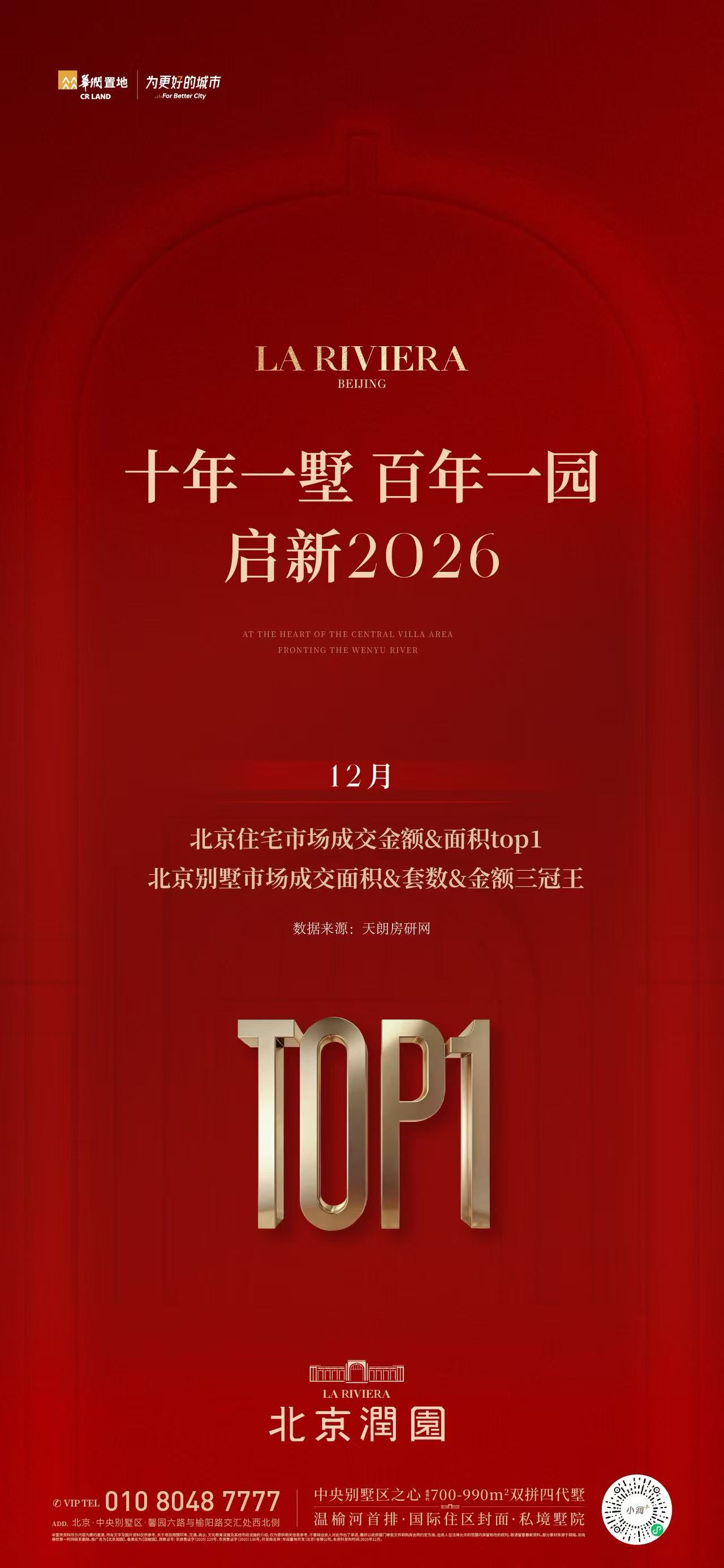 1月1日,据北京润园销售海报显示,项目拿下成交面积、套数及金额三冠王。