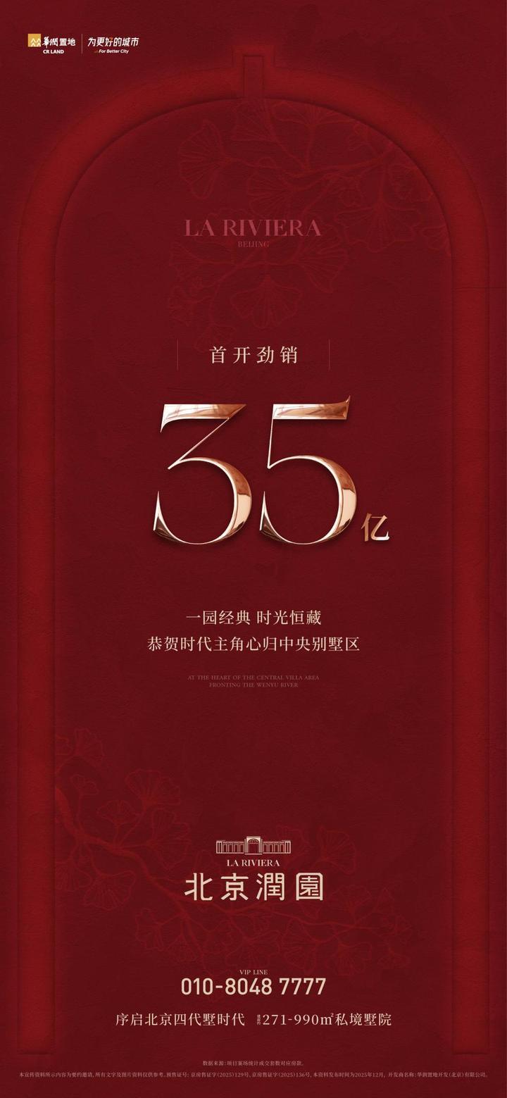 而2025年12月5日,北京润园正式开盘,并发布红色海报:首开劲销35亿。