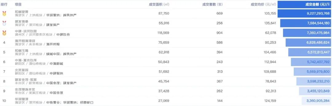 毫无悬念,海淀凭借强势地段与高单价,直接承包了金额榜的半壁江山。