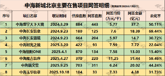 从目前主要在售项目的网签明细看,中海新城2026年的主要任务,还是如何去库存。