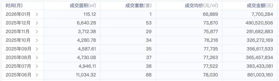 115/116㎡的价格也是真的香,成交均价从77,823元/㎡(2025年8月),一路下探至73,058元/㎡(2025年12月),再到今年初的66,889元/㎡。