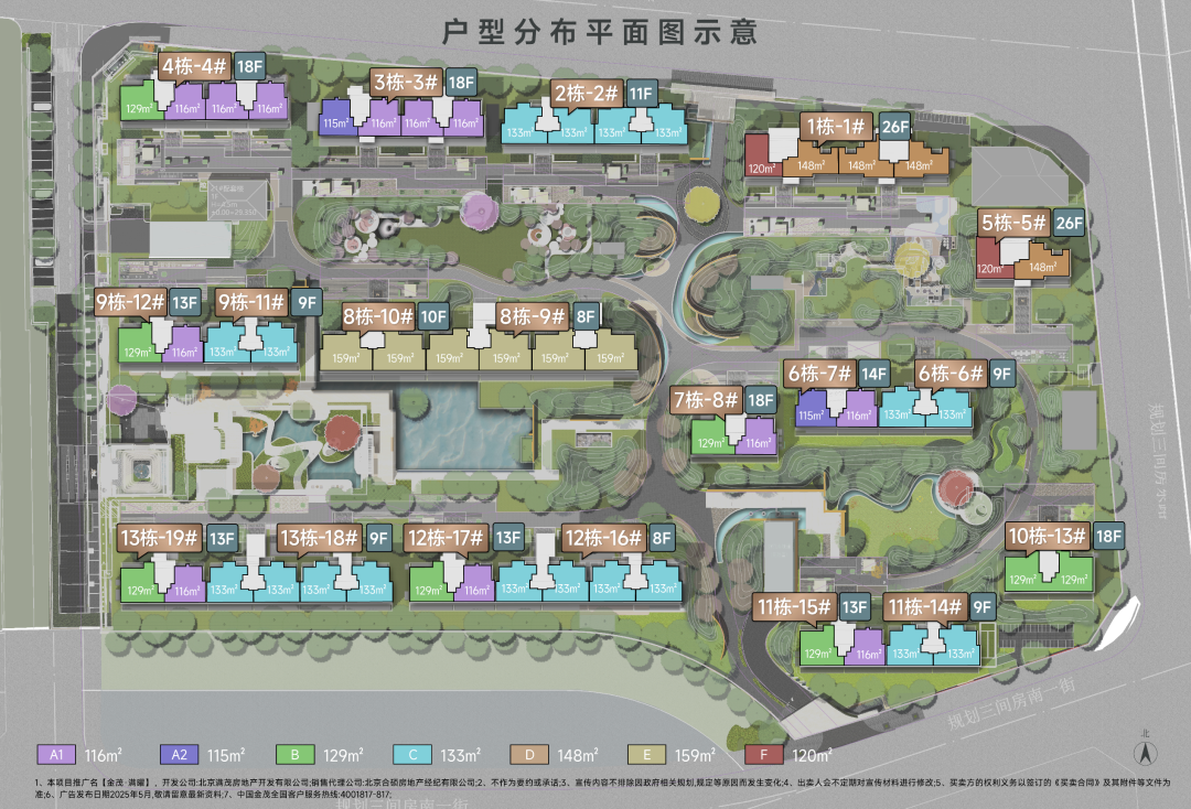 它主推115/116㎡三居和129㎡/133㎡/159㎡四居,少量120㎡和148㎡户型。